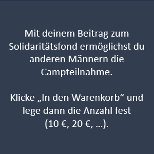 Mit deinem Beitrag zum Solidaritätsfond ermöglichst du Männern die Campteilnahme, die sich das Camp nicht leisten können.